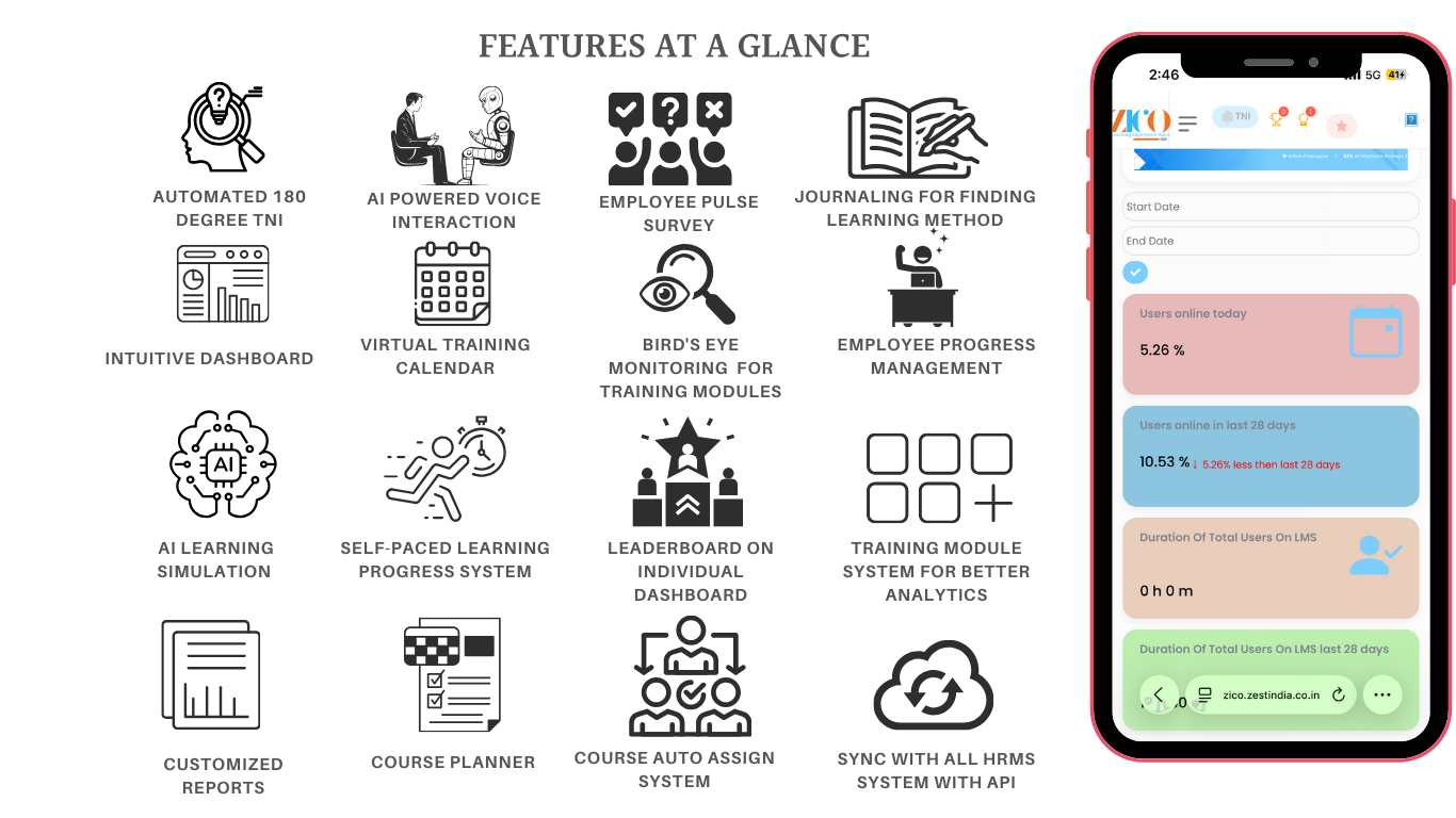 Unlike most LMS available around, ZICO LMS is not just an e-learning platform. It can create automated training calendar as per training required and allocate the training to respective people.